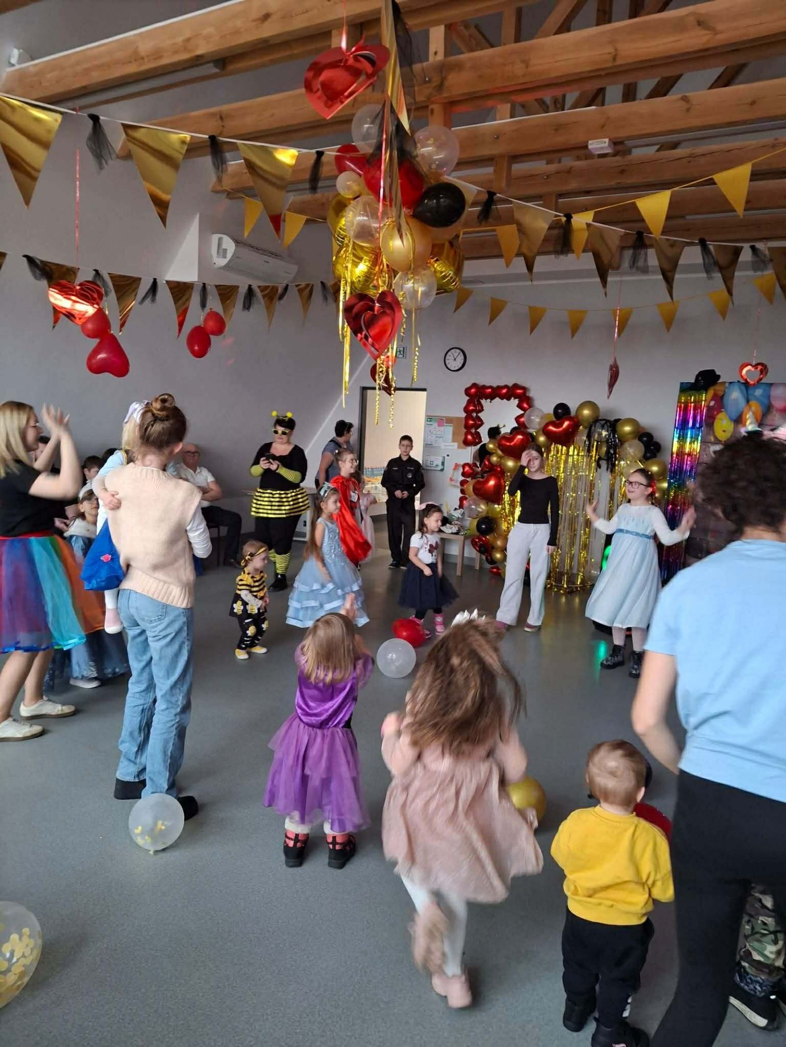 Od samego początku panowała magiczna, karnawałowa atmosfera. Dzieci zachwycały pięknymi, kolorowymi strojami- na parkiecie można było spotkać księżniczki, zwierzątka i wiele innych bajkowych postaci. Ogromnym zainteresowaniem cieszyły się kolorowe tatuaże oraz fantazyjne warkoczyki, które dodawały uczestnikom jeszcze więcej uroku i radości. To był niezapomniany bal, który na długo pozostanie w pamięci uczestników- pełen ciepła, integracji i prawdziwej karnawałowej magii.